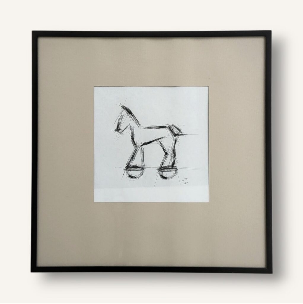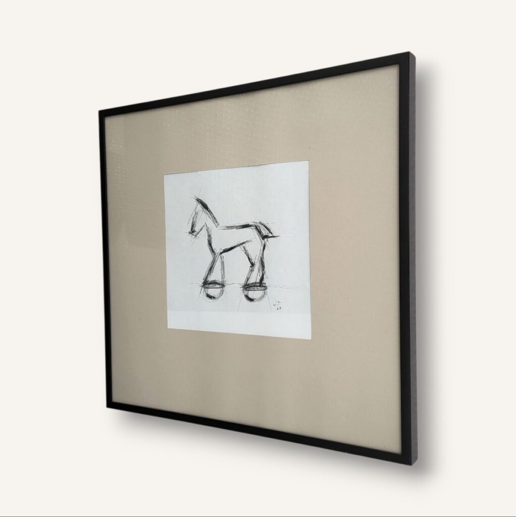 Blyertspenna teckning, papper, svart aluminium ram